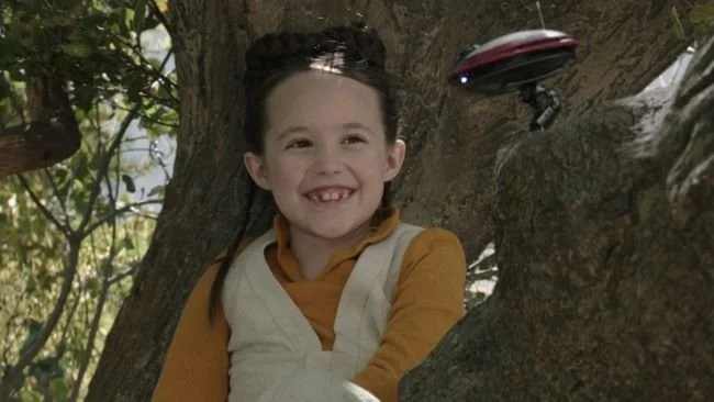 The scene opens on the picturesque image of Alderaan, previously shown in Star Wars: The Old Republic game. Then, the camera focuses on our little princess in the common trope of running away from her princess duties to climb trees and watch spaceships. However, we quickly learn there may be more to her rebellious nature as she pickpockets the L0-LA59 droid while hugging her mother.