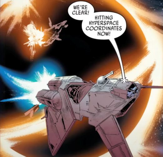 Bounty Hunters #28 is an enjoyable issue that sets up the Edgehawk crew for a fight with Valance and the Revengers. Valance’s attitude towards Vader and Vader’s subsequent threat via fixing his collar demonstrate Vader’s power in a passive-aggressive and demeaning way. The follow-up with Vukorah is also a nice touch, showing her lingering trauma from her encounter with the Edgehawk crew even as she takes control of the Unbroken Clan. The escape from the Accretion Disco is fun and action-packed, with the station’s destruction being a visual highlight moment of the entire comic series.