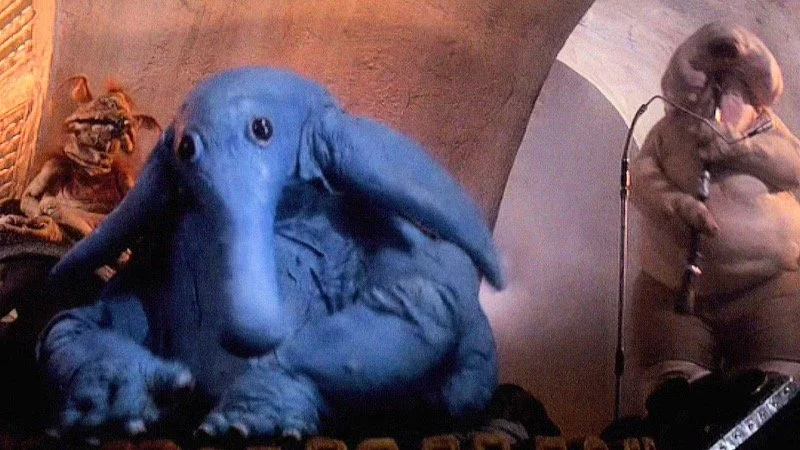 One of the most popular groups is Figrin D’an and the Modal Nodes, also known as the cantina band. They are most known for playing “Mad About Me” in Chalmun’s Spaceport Cantina. Another famous group within the universe is The Max Rebo Band. They were stationed in Jabba the Hutt’s palace and, later on, the sailbarge. They performed the song “Jedi Rocks”. Most bars, both in Star Wars and real life, play music to entertain patrons. Oga’s Cantina on Batuu had a constant stream of music, thanks to the reprogrammed RX-series pilot droid R-3X.