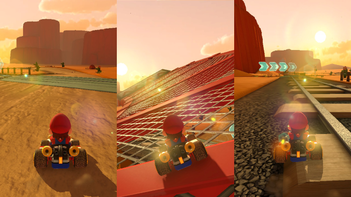 Kalimari Desert first graced the series in Mario Kart 64, with a racetrack and a railway line that intersected with each other at two points. Trains would act as obstacles at those intersections as racers crossed them on the railway track. While racers could go onto the railroad track itself, they would not gain any advantage from doing so. When the track was brought to Mario Kart Tour, no one expected a variation.