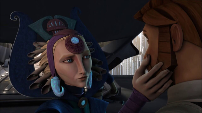 Obi-Wan suffered the death of another potential romantic partner in Duchess Satine of Mandalore. In the fifth season of The Clone Wars animated series, Darth Maul holds Satine in front of Obi-Wan, choking her and urging Obi-Wan to give in to his anger and hate. Obi-Wan refuses, and Maul murders her in front of his eyes. Maul’s forces then take Obi-Wan to a prison cell, where he mourns Satine, but still does not succumb to the dark side of the Force.