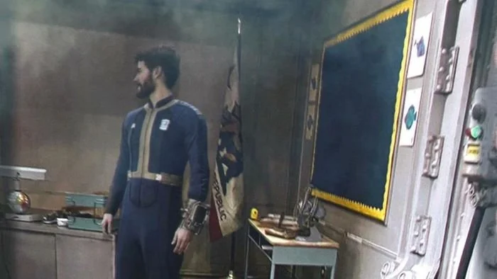 To me, the most revealing photo is below, and it gives a MAJOR clue as to the location of the Fallout television show. There is a New California Republic (NCR) flag in the background! This seems to confirm that Vault 33 is on the West Coast unless the NCR has expanded more east. In Fallout lore, the NCR’s territories covered southern California, Oregon, and Nevada. While I think they may have expanded into the wastelands east of Nevada further than they did in Fallout: New Vegas, I do not think the NCR has made it to the East Coast just yet.