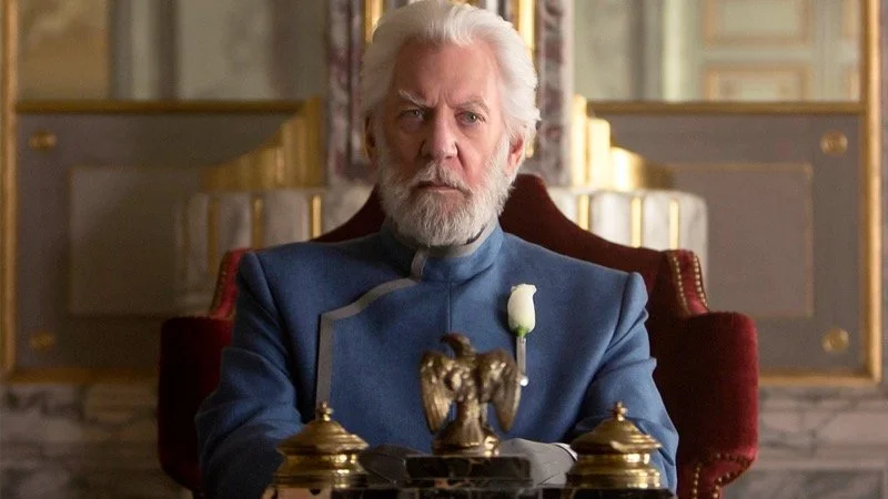 Let’s start with Snow, played in the films to absolute perfection by Donald Sutherland. He constantly smells of blood and roses, perfectly representing his combination of menace and class. He has no problem killing anybody who gets in his way, no matter who it is. The closest thing he has to a friend might compromise him. He’ll die at the hanging tree calling for his mother. There’s a hospital that’s an easy target? Level it. Try to break their spirits. The opposing army is in the Capitol? Set horrific traps that will ensure that their soldiers die horribly. Then there are the Games themselves. In Songbirds, they’re just a means to an end. He’ll use a tribute that he sees as less than human as a possible way to get money.