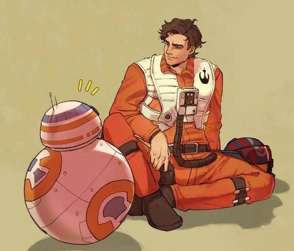 阿霄 siu @ college tweeted a beautiful illustration created by his wife. Like R2-D2, BB-8 only communicates in simple beeps, but he always manages to get his message across. This picture of Poe and BB-8 sharing a conversation with Poe listening intently exemplifies their relationship.