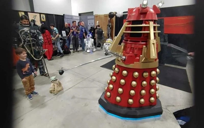 Interviewing a Dalek basically consisted of following my favourite Dalek (the red one), around the convention floor until he returned to the Doctor Who Society area, after which I was able to ask him about his obsession with hats. His answer: He thinks they look good on him and they’re also good for collecting human DNA.