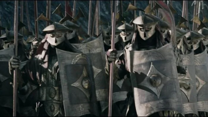 The men that remained in the Rhûn, however, turned from their western kin, and often sided with the dark lords that came to rule Middle-earth like Morgoth and Sauron. Known as Easterlings to the Men of the West, they allied with the dark lords and rode to battle with them in the slaughter and enslavement of their kin. This was alluded to in The Two Towers, when Sam, Smeagol, and Frodo are trying to get through the Black Gate. There was an army of Men who wore armor that was different than the Rohirrim and Gondorian soldiers. In a previous scene, Faramir’s lieutenant mentions that “Easterlings” march through the Black Gate daily.