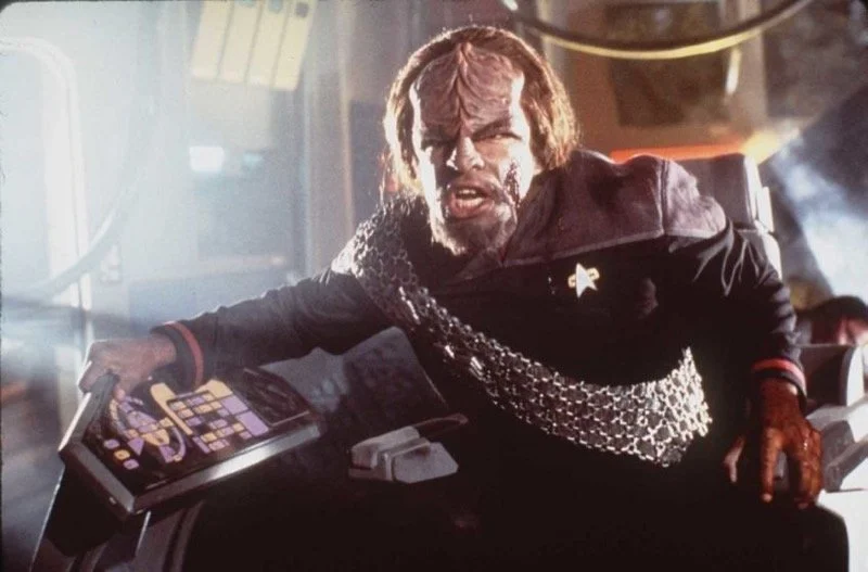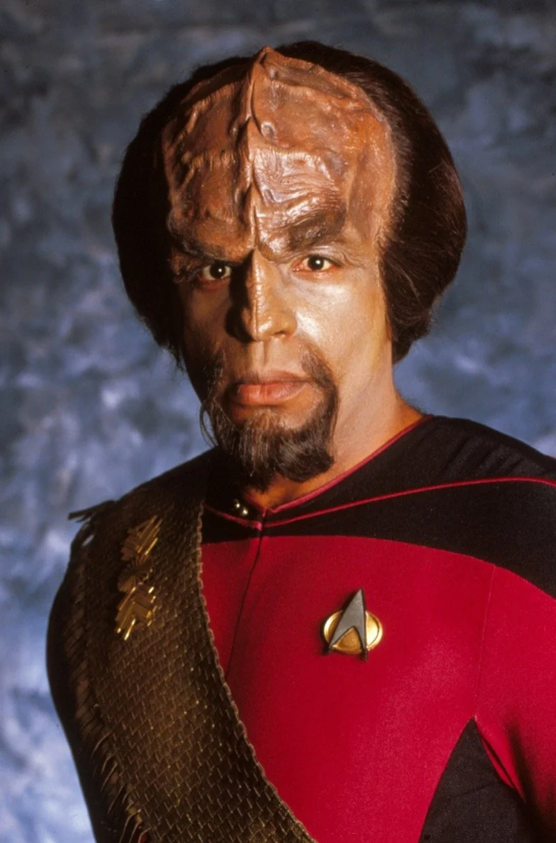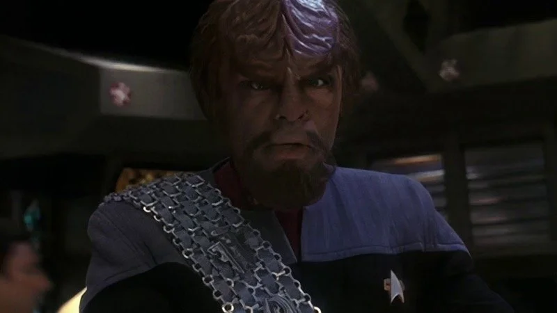 Worf while serving aboard the Enterprise-D during Season 1 of Star Trek: The Next Generation