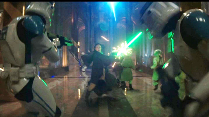 The Obi-Wan Kenobi series begins with a shot focusing on one particular youngling in training at the Jedi Temple, before developing into an action sequence of the group of younglings seeing their Jedi instructor being killed by 501st clone troopers before their eyes. In another tragic rendition of Operation Knightfall, the group is seen having to escape the chaos and slaughter at the Temple.