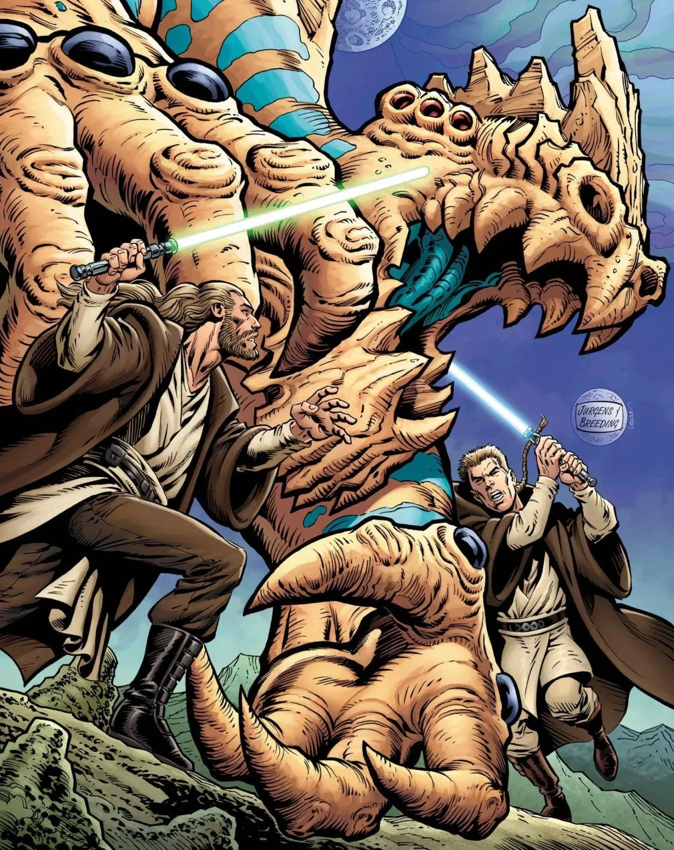 The third issue has less information available about it, but Guggenheim mentioned the presence of kaiju in Star Wars as Obi-Wan and Qui-Gon’s master and apprentice story is set within this issue. The pair are forced to battle huge monsters while trying to save the life of Senator Bail Organa, giving us our earliest look at this iconic Star Wars character. The artwork depicting the skyscraper-sized monsters is another detail praised by Guggenheim.