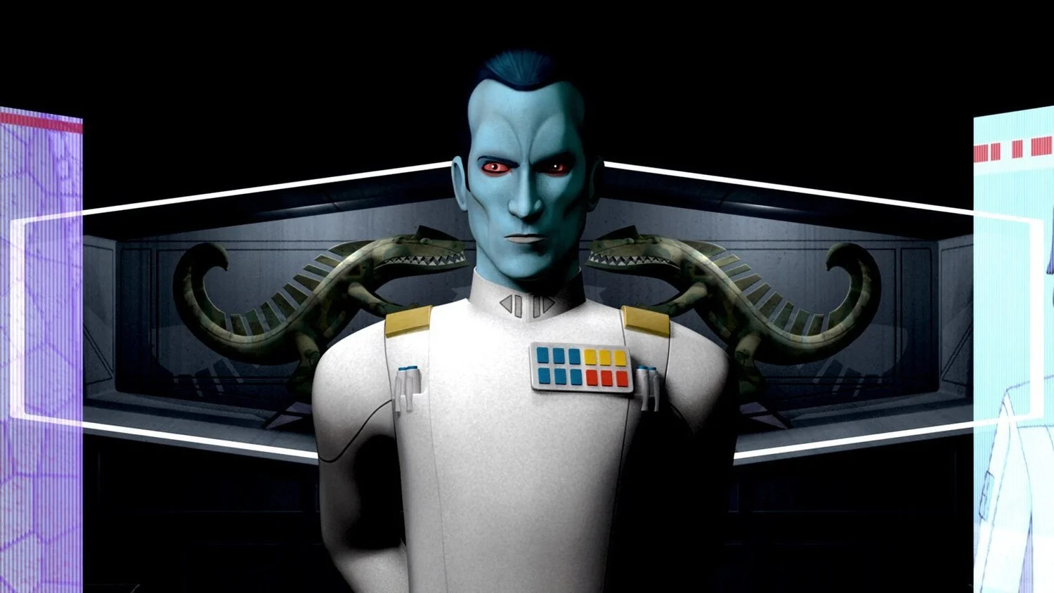 In that particular episode (Chapter 13 of The Mandalorian), the Magistrate also has a spear made of beskar material. Ahsoka wins it in combat and gives it as “payment” to Din Djarin, who brings it back to the Armorer. She is very concerned that such a thing exists, as it could pierce beskar armor and harm Mandalorians. The Armorer melts it down and creates armor from it. Jumping to the sixth episode of the third season of The Mandalorian, we find out that beskar was used to get Moff Gideon out of the New Republic ship. In the finale, we also find out that Moff Gideon has been using beskar to outfit his clones, which he plans on using to create the ultimate army. Since the beskar was in the possession of the Magistrate and Moff Gideon, both of whom seem to be acquainted with Thrawn, this is another point that shows the series’ connections. Back in Episode 7 of the third season, of The Mandalorian, Moff Gideon talks to several Empire loyalists, including Rebels and Heir to the Empire character Captain Gilad Palleon. In this hologram conversation, Grand Admiral Thrawn is brought up and talked about as though some present expect him to show up at any minute.