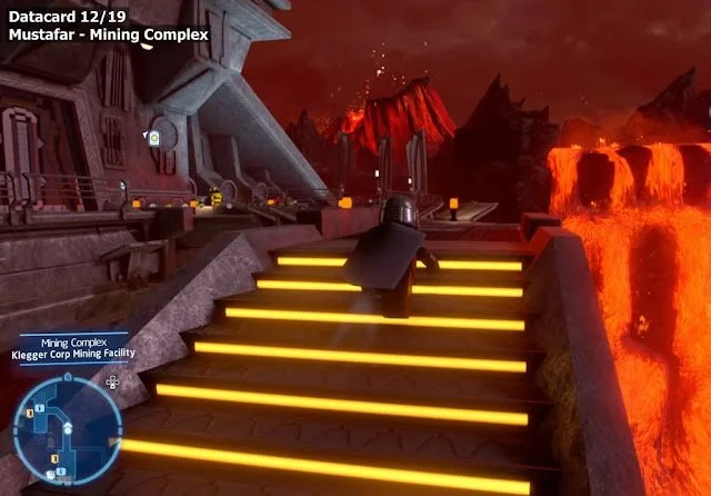 The Mustafar Datacard is located in the Mining Complex. Head north, going across long corridors and walkways until you come across some yellow stairs.