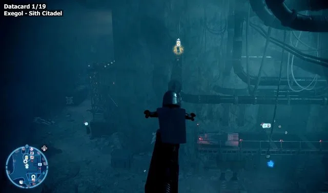 To find the Datacard in Exegol you must go to the Sith Citadel. Go to the south side of the landing pad and stand on the lift to descend to the lower level.