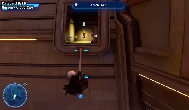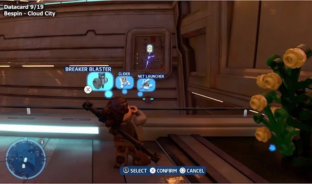 Once in Cloud City, go to the Central Plaza. The Datacard is behind a door in the southernmost spot of the plaza. You will need a Scavenger character (such as Rey) to use the Breaker Blaster to blast down the door.