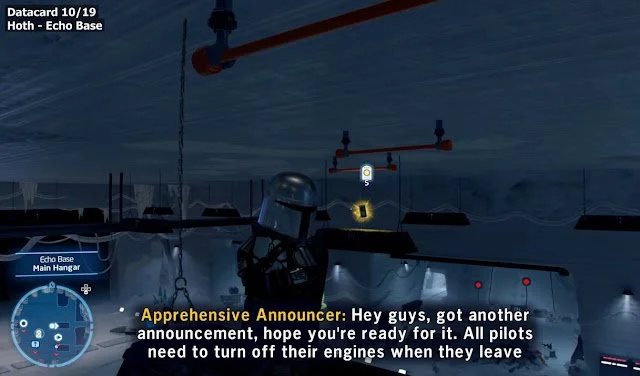 The Crait Datacard is very easy to find. The only thing you will have to do is head north of the landing zone room, go up the stairs, and you will find the Datacard on top of some red pipes.