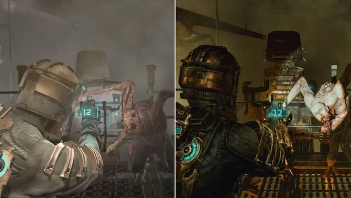 The remake also positively changes a few things. It tries to dwell more on the relationship between Clarke and his wife, who was aboard the Ishimura. Holographic memories similar to The Division or Doom accentuate this, showing what happened to her and to the other crew members. IGN also mentions that the remake altered some essential parts of the game. In the 2008’s version, there is a sequence in which the protagonist sits in a gunner position, taking out asteroids coming in the ship’s direction. This is no longer in 2023’s edition. Now Clarke is forced into outer space and has to guide himself along the ship’s hull, avoiding asteroids. This time around, he has a guiding system and is able to use this to aim the vessel’s massive cannons.