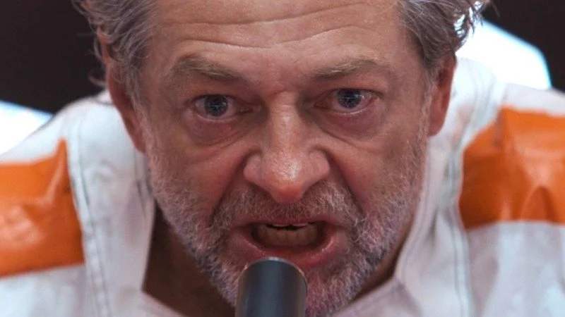There are also the prison sequences and the escape. Much of the episode “No One’s Listening" focuses on Kino’s face, and Serkis’ incredible acting traces the gradual comprehension of his lot in the prison, or the incredible passion in the control room when he delivers his speech. Haynes purposely films Kino’s face at odd angles and a shaky camera at the start, and as he gains confidence and anger, those shots become more focused and clean. Haynes says, “I wanted to make sure it felt like you knew where you were just by the way that the camera is behaving.” He discusses how the camera in episode eight is more “cinematic”, but by the time it gets to episode ten, it’s far more frenetic. Like the way it races up the stairs with the prisoners as they ascend the prison, or zooms in on Kino’s face as he realizes he’s going to have to swim, and he’s overtaken by the bodies of the escaping prisoners.