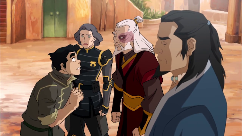 Tonraq, Zuko, Lin, and Bolin discuss how to deal with Zaheer.