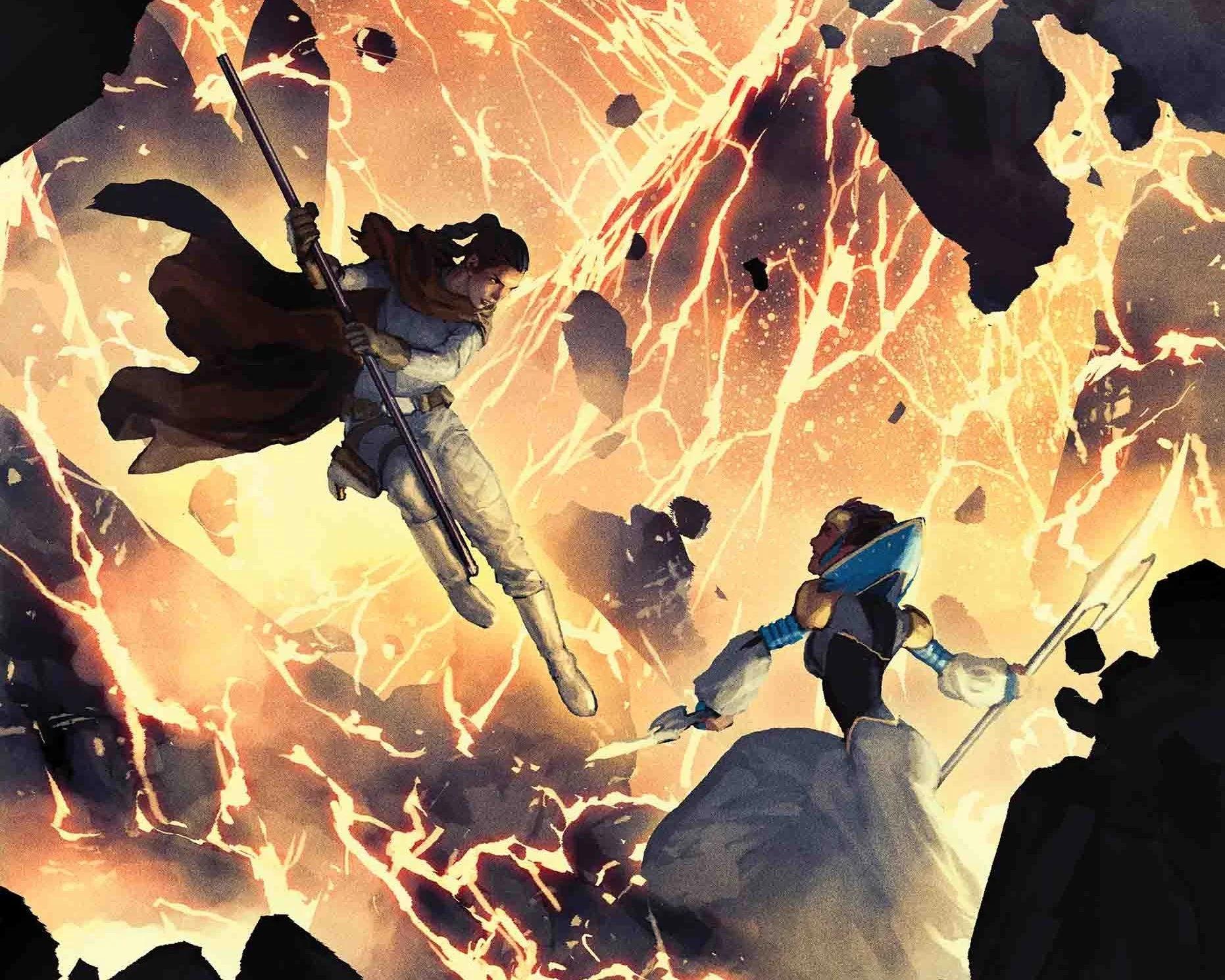 Leia gathered an array of allies, including the remains of Saw Gerrera’s Partisans, which proved an issue when they went rogue. They tried to sabotage the Spike to punish Shu-Toran, which would have killed millions. Meanwhile, Trios had now been alerted to the threat to her planet. In a move of utter callousness, she risked many lives by breaking through the seal around her celebration hall which the Rebels had locked shut. She rushed to face her foe, forced to avoid a bombardment from the Empire who sought to keep close control of the situation. Believing Leia had ordered her world to be destroyed, Trios had her forces charge the Rebel position in the throne room of her family’s retreat, and engaged in single combat with Leia as debris fell from the ceiling.