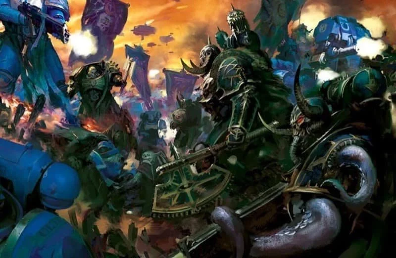 The former 14th Legion was once methodical, unwavering soldiers who resisted the corruption of Chaos until they were betrayed by one of their own. Becalmed in the Warp during the final push on Terra during the Horus Heresy (becalmed meaning unable to advance through the Warp, equal to a ship trapped without wind in its sail, hence the terminology), they were beset by diseases and ultimately succumbed to Nurgle’s blessings. They became fetid, bloated beings bringing plagues and death with them wherever they went, while also being capable of surviving immense amounts of physical trauma.