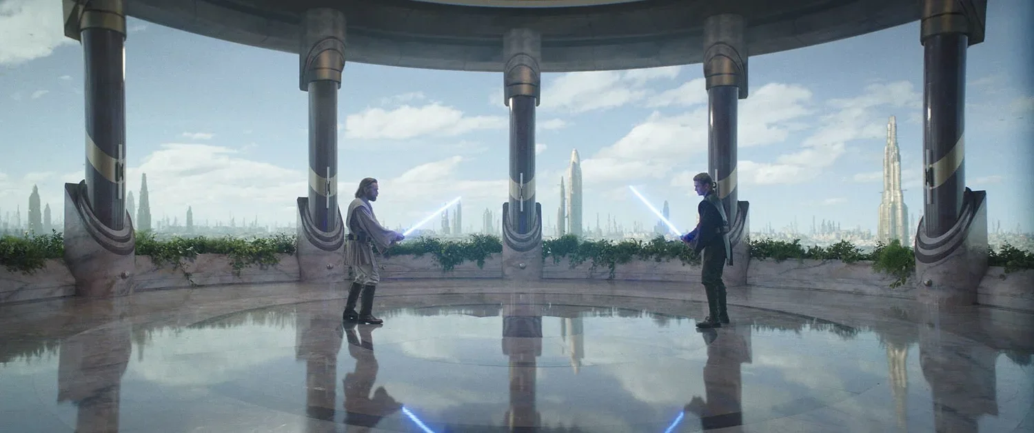 Obi-Wan and Anakin training in a beautiful open-to-the-air room of the Jedi Temple. Image Source: StarWars.com