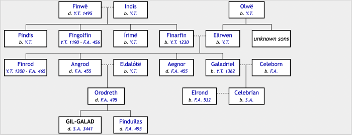 Gil-galad was a member of the Ñoldor, one of the great clans of the Elves. The Elves were created and then “awakened” from a sleep that was pre-determined by Eru Ilúvatar. Upon awakening, they were to journey from their place of birth and awakening to the land of Aman, where the Valar, their “gods,” resided. The first group to make the journey was known as the Vanyar. The second group eventually became known as the Ñoldor.