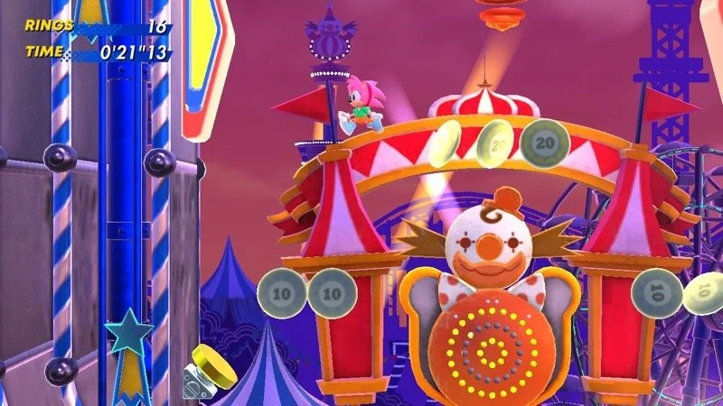 The gameplay of Sonic Superstars essentially stays faithful to the classic Genesis/MegaDrive games. However, there are some updates to the formula. Firstly, the dropdash from Sonic Mania returns. In addition, Amy is also once again playable. The chaos emeralds also have more purpose than just giving the player the ability to turn super or unlock the true ending. Each emerald grants the player special powers for use in the zones. The blue chaos emerald gives the player the ability to make clones of themself. Next, the red emerald turns the player into a fireball that can be launched into the air at enemies.