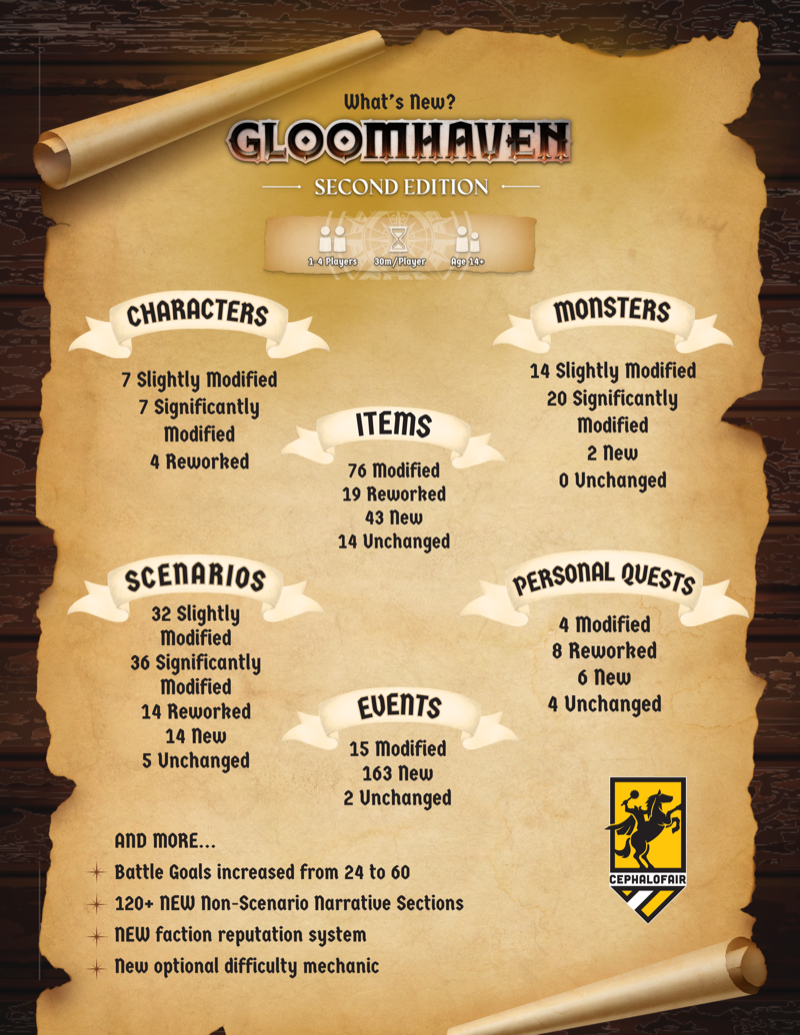 On top of that we have our new printing of Jaws of the Lion, which is back in stock now. Our most anticipated one that we have going on for this year is our second edition to Gloomhaven. There has been a lot of confusion about this one because a lot of folks think that it’s a reprint or redesign of the game, but it’s actually a brand new game. We wanted to bring something new into the game so when you notice the box for second edition, it doesn’t just have new artwork, but there’s also some additional names that will be at the bottom of the box. Isaac [Childres] is still a part of it of course because this is his world. Then we have Drew [Penn] and Dennis [Vögele] who are also helping write the new scenarios for second edition. Dennis is a really good puzzle master so we have new puzzles and then we have a lot of new artwork. The boss and boss fight are going to be different. The only thing that’s similar are the monsters and the character sheets which pretty much stay true to the originals. We’re big into playability in all our games so you can play characters from Gloomhaven and you can also take those characters and bring them to Frosthaven. We needed to revamp the Gloomhaven starter 6 characters to keep up with the other games so you’ll have a fighting chance when you go to those worlds.