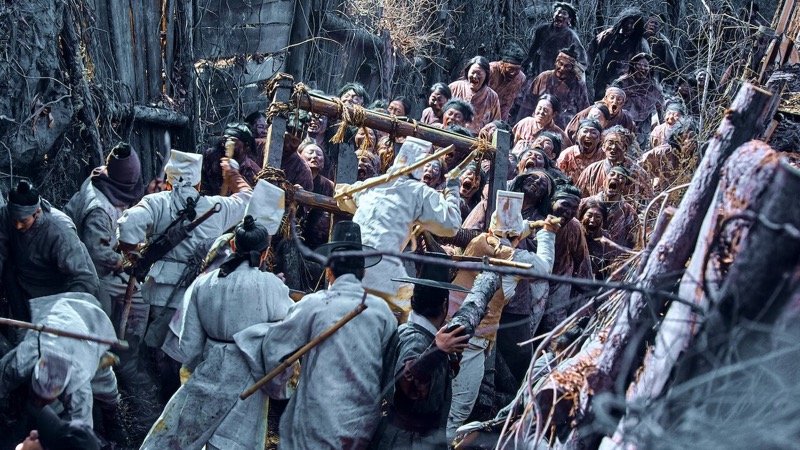 It’s a little jarring at first, but it soon descends into a creepy and engaging horror. It still retains the cinematic beauty of the period, showing Korean culture off in all its splendour. But there are also gangs of people with flesh hanging off their faces trying to eat everyone.