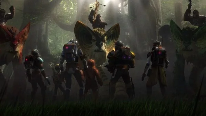 The previously cut Kashyyyk arc of The Clone Wars meant to use the Wookiees’ giant mounts known as the Mylaya. The cat-like creatures would be repurposed in The Bad Batch episode.