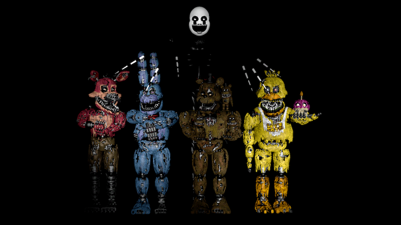 This one is a given, and honestly, out of all of them, there is the highest chance of this one happening. The Puppet is the only one that has actual intelligence. To quote one of her game over lines from Ultimate Custom Night, “The others are like animals, but I am very aware.” That would easily make her the most threatening animatronic in the films. Given that she was one of Afton’s first victims, she has an insatiable vendetta against him. There would be no need to see kids’ drawings to start the fight. Her drive to torture Afton for all of eternity would add a fascinating dynamic to the film, especially if the protagonists do something that she sees as getting in her way. Trying to avoid a creature that, as Afton says in the second game “is always… thinking, and it can go anywhere.” would be terrifying. Springtrap vs the Puppet. Let it happen.