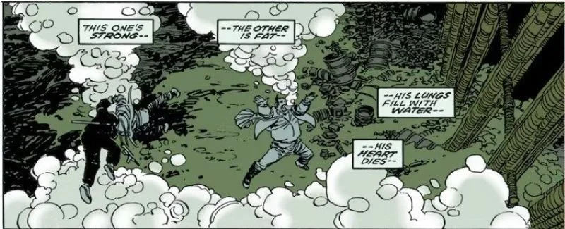 Wilson Fisk is a powerful crime boss, so it makes sense that he would have many men underneath him to help him out. Since Daredevil tries to stop Fisk, it's no wonder his men will get in the way and become collateral damage. In both the show and the comic Daredevil: The Man Without Fear #4 he comes across a warehouse full of children. Fisk owned the warehouse, so naturally, he came down hard on the men at the warehouse. He got to the drop on two of them at the docks and was able to take them down quickly, and left their bodies floating in the water.