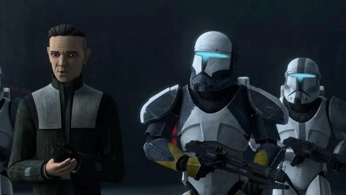 In the first season episode of The Bad Batch, “War Mantle,” a familiar clone commando named Scorch is seen trying to apprehend Gregor and Clone Force 99. He first appeared in the Star Wars: Republic Commando videogame where as a member of the elite unit known as Delta squad. He makes another appearance in “Metamophosis,” leading his own clone commandos in bringing the Zillo Beast back to Mount Tantiss.
