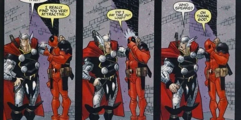 Ryan Reynolds recently broke the internet with a team-up announcement for Deadpool 3, but behind the scenes, Reynolds has been pushing Marvel to show a different side of Wade Wilson. In the comics, Deadpool is firmly pan-sexual, as confirmed by writer Gerry Duggan. Co-creator Fabian Nicieza agrees, saying “He is NO sex and ALL sexes. He is yours and everyone else's. So not dismissive, but rather the epitome of inclusive.” However, Marvel Studios has kept his portrayal strictly heterosexual onscreen, despite already being banned in China, and not needing to appease the censors there. At a Comic-Con panel in 2018 Ryan Reynolds said “I think [Deadpool’s sexuality] could be played up more. He’s an outsider in every way, shape, and form” so there’s a possibility that we could see a more accurate portrayal in the future. In the comics, Wilson is confident, forthright, and unashamed of his sexuality. It could only be positive to bring his example to the screen. Here are six times that Deadpool was an LGBTQIA+ icon.