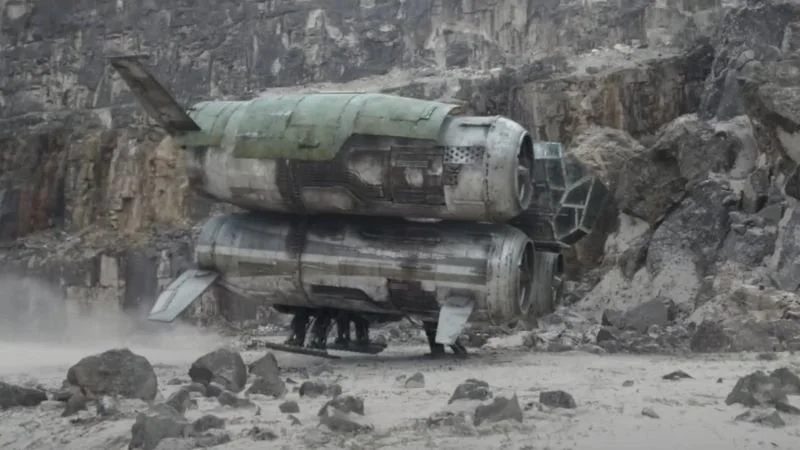 When Andor and Melshi finally reached the top of the cliff after escaping from the Narkina 5 prison, the ship they intended to use for their escape was a quadjumper, a vessel first introduced in The Force Awakens. Rey and Finn planned on using it for their escape from Jakku before it was blown up by the First Order and the two heroes had to settle on the Millennium Falcon.