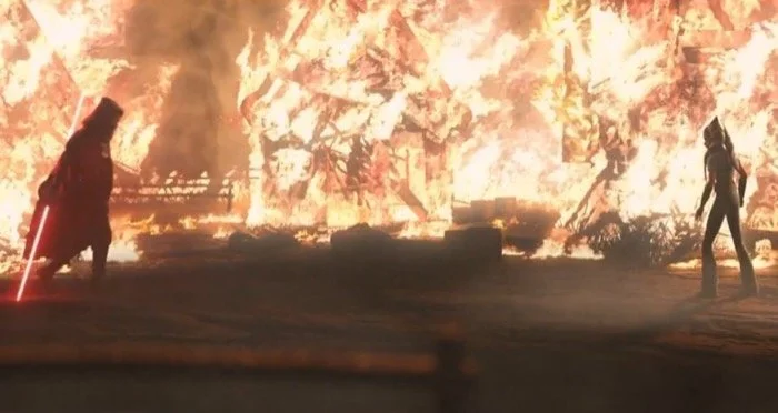 Ahsoka confronts Maul on Mandalore. Before their final confrontation, she finds out that Anakin will be responsible for the fall of the Jedi. When she sees Maul again, he offers her a role alongside him, where together they can defeat Darth Sidious. She refuses to believe Anakin’s fate, defeats Maul, and takes him into custody.