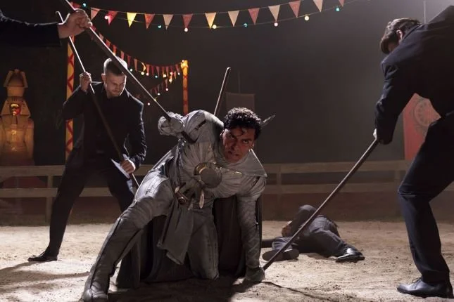 Marc fails to get information on the sarcophagus from a black market informant in Cairo. He runs into Layla and the two agree to put their disagreements aside and work together in search of the sarcophagus. Layla has tracked it down to do a certain collector named Anton Mogart. This may be our first real connection to the greater MCU. Just before Marc/Steven is able to get information from the sarcophagus, Harrow shows up. Marc summons the Moon Knight suit. We then are treated to more demonstrations of Moon Knight’s powers including his ability to stop bullets and healing abilities. Ultimately the fight sequence feels like a return to standard MCU action as opposed to the earlier knife fighting scenes, which are more fresh and unique for the show.