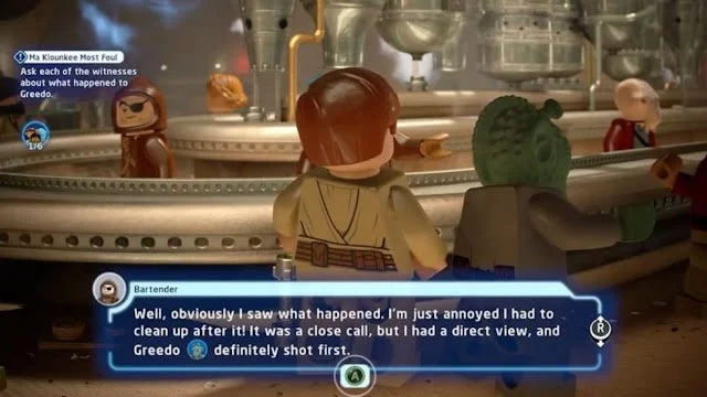 Before you answer, you might want to play LEGO Star Wars: The Skywalker Saga. On Mos Eisley, there is an awesome little side-mission called “Ma Klounkee Most Foul” in which you are tasked by stormtroopers to interrogate eyewitnesses of the infamous shootout between Greedo and Han Solo to figure out who shot first!