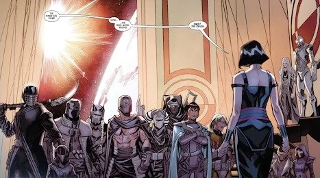 Written by Charles Soule, the same writer as War of the Bounty Hunters, Crimson Reign follows Qi'ra and her many allies in Crimson Dawn as they wreak chaos in the underworld to divert the Empire's attention and create an opening for them to assassinate the Emperor himself. The first issue of the series saw Qi'ra sending her associates to different corners of the galaxy to stoke her syndicate war. While the issue mainly focused on Chanath Cha, a returning character from Soule's Lando miniseries, and her group known as the Orphans, we also got glimpses at Qi'ra's other partners and their own current assignments. One of the most interesting of these partners is undoubtedly the Knights of Ren.