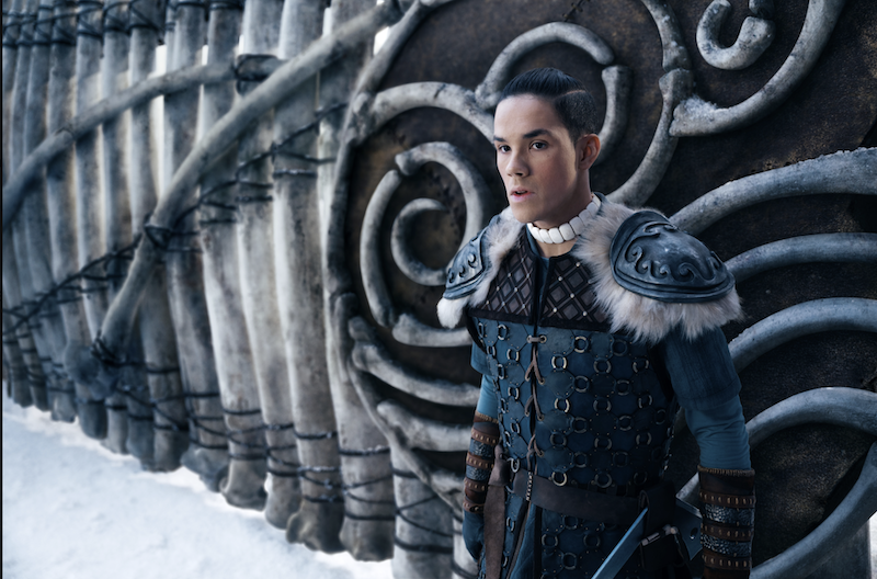 The shots are likely from the first episode or so since the show is supposed to follow the animated series closely, and the first few episodes took place at the Southern Water Tribe. You know, the South Pole. There’s lots of snow. In the shot of Aang, you can see the Southern Water Tribe’s homes in the background, accented with what looks like hides and wooden framing. There is also what looks to be a weapon rack, which likely holds Sokka’s weapons. And one can’t ignore the impressive detail of Aang’s Air Nomad tattoos.