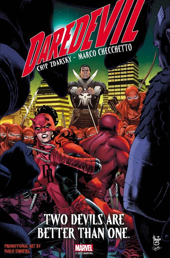 To promote this upcoming run, two promotional art pieces by artist Paulo Siqueira are being released. In it, readers can see the Avengers along with The Hand, now being led by The Punisher. Siqueira’s promotional artwork will also be featured as variant covers for Daredevil #3 and Daredevil #4.