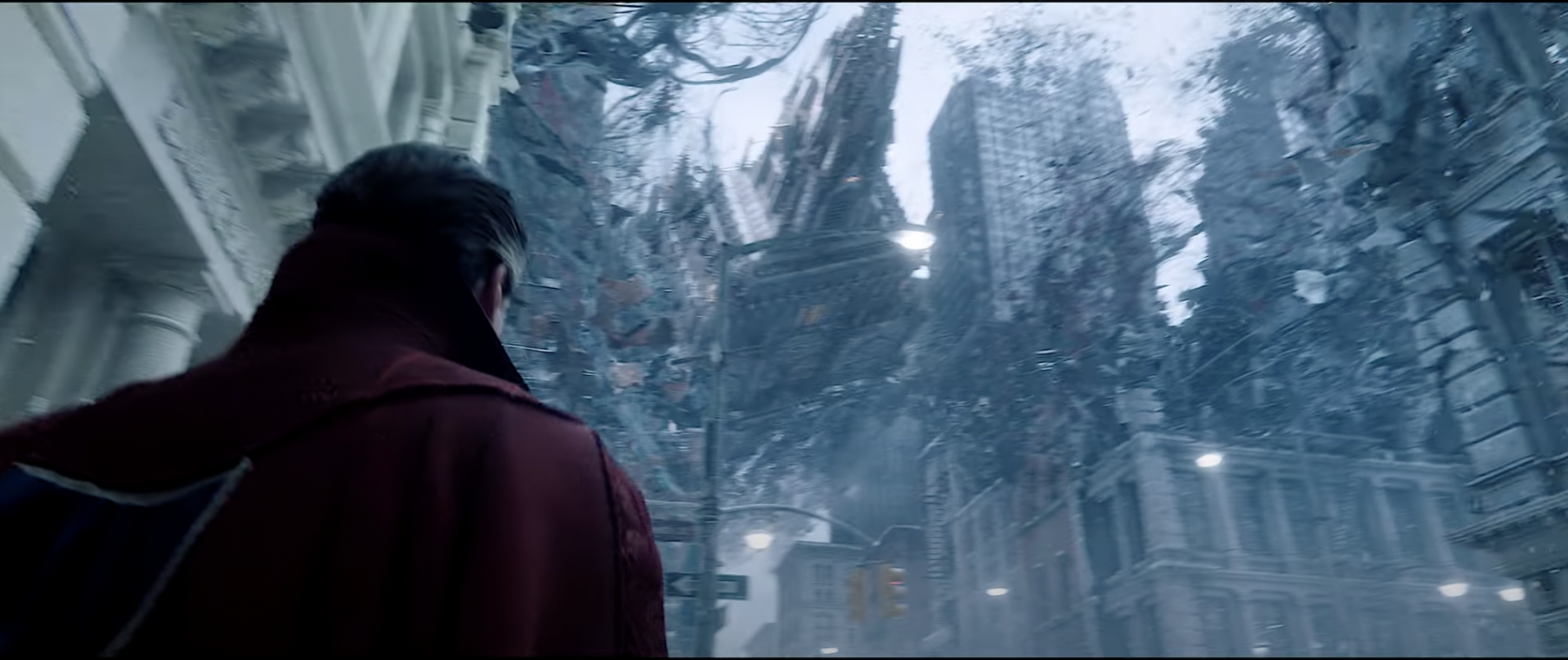 Okay, I’m starting with one that is a technicality. The film opens with Stephen in an outfit reminiscent of his Defenders garb (including obligatory ponytail). While we don’t see this universe itself, it’s exciting to think there’s potential for that universe and for Morgan Le Fay to make an appearance.