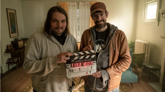 ‘The Umbrella Academy’ creators Gerard Way and Gabriel Bá on the set of Season 2 Image Source: Christos Kalohoridis/Netflix