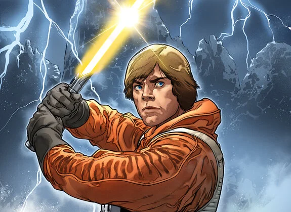 It might be considered sacrilege to rank this above Luke's more iconic blue and green blades from the films, but hear me out! For those of you who may not have been following the Marvel Comics, Luke Skywalker finds this High Republic era lightsaber in an old Jedi Temple shortly after The Empire Strikes Back. And he uses it to fight a specter of the Grand Inquisitor. The yellow blade matches with the gold on the hilt. The yellow blade is actually a shoutout to an old Kenner toy. It is understandable that Luke would want to build his own lightsaber, but I have to imagine that he ends up losing this one somehow, because it is just way too cool to toss aside and not use.