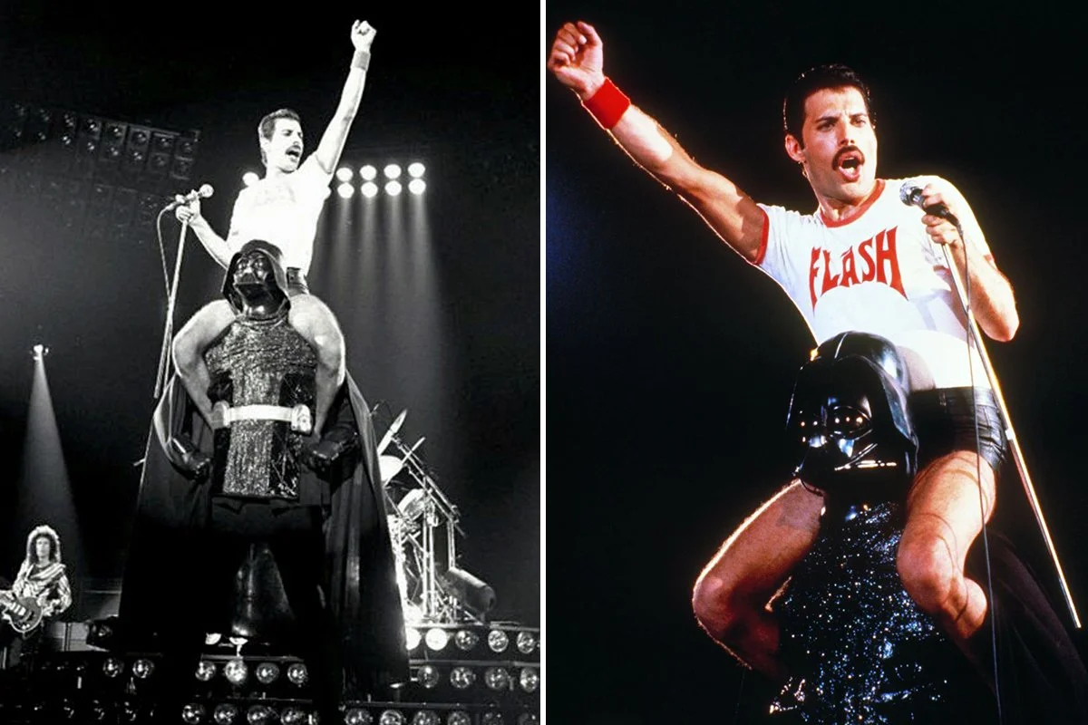 In some of these concerts, Mercury wore a Flash Gordon t-shirt, raising further discussions on the meaning of this gesture. In the early 70s, George Lucas had famously tried to acquire the filming rights to Flash Gordon and when he wasn’t able to he created Star Wars instead. When the Flash Gordon movie came out in 1980, Queen provided the soundtrack for the film, including the hit single Flash. So, when Freddie Mercury came out on stage with a Flash Gordon t-shirt on top of a man in a Darth Vader mask many regarded this as Mercury’s extravagant way of saying that Flash Gordon was a superior movie to Star Wars. But then again, this is purely speculation, as the singer also appeared on the shoulders of a man dressed in a Superman as well as a Santa Claus costume. George Lucas was not too pleased with this kind of publicity for his space opera and sent out his lawyers with a cease and desist order and that was the end of the Dark Lord appearing on the band’s concerts.