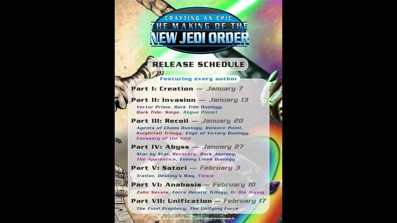 In the history of Star Wars Legends, the New Jedi Order novels series was perhaps one of the most consequential and dramatic turning points of post-Return of the Jedi Star Wars Legends novels. One YouTube creator, Kyle Meisch, known simply as holonet on YouTube, has been working on and is set to unveil a massive documentary retrospective of the entire novel series, written by several authors, over the next few weeks.